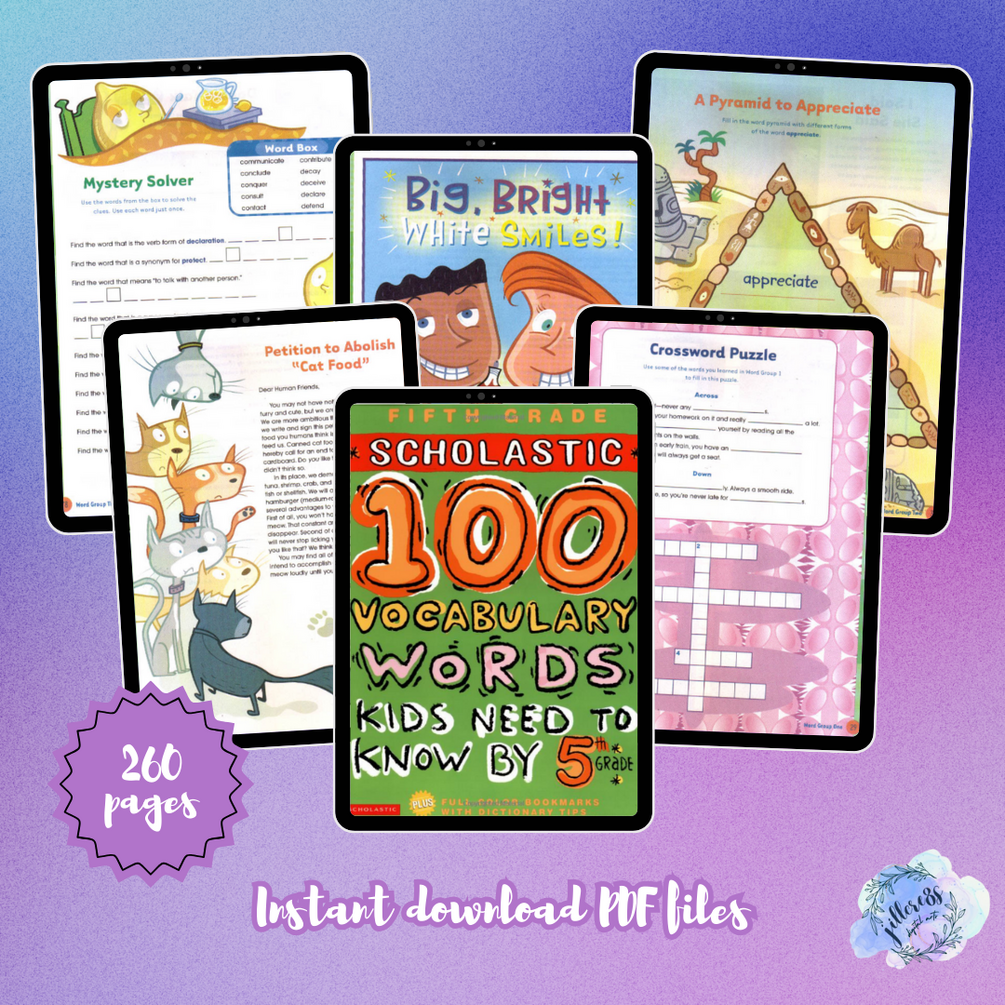 Unlock the power of words with "100 Vocabulary Words for Kids"! This engaging ebook is designed to help young learners from 1st to 5th grade build a strong foundation in vocabulary while having fun.