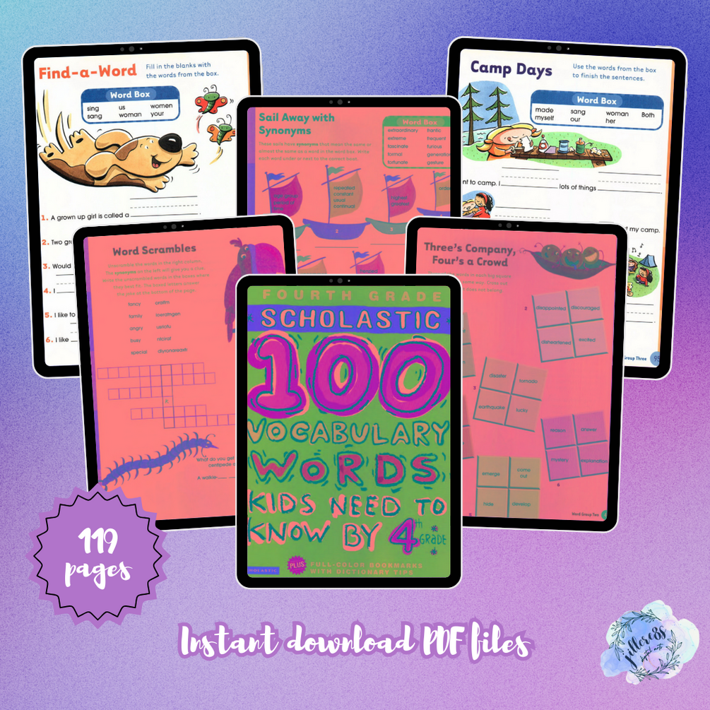 You'll get 100 vocabulary words for children from 1st to 5th graders.